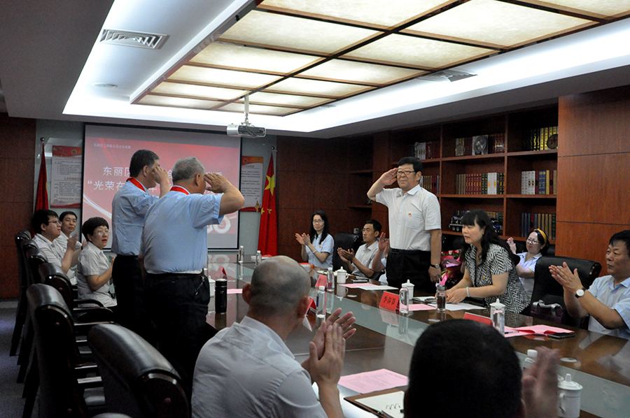 为庆祝中国共产党成立100周年,6月23日上午,安达集团隆重举行“光荣在党50年”纪念章颁发仪式。向安达集团党委书记、董事长崔洪金的部队老领导、企业老同事,党龄达到50周年以上、为党奋斗工作的老党员杨凤岐、寇汉臣两名老党员颁发“光荣在党50年”纪念章。东丽区工商联会员企业党委副书记李春节,安达集团党委书记、董事长,区工商联会员企业党委委员崔洪金,老党员随行家属代表以及集团党委党员代表、新发展党员代表30余人参加仪式活动。